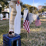 In this intervention at the St. Augustine National Cemetery, I placed my sculpture—topped with a form resembling a child’s limb—amongst the official military headstones. My intention was to overlap the memory of innocent war victims with the memory of soldiers. By bringing these two 'monuments' into the same space, I am suggesting that they are all victims of a larger, greedy system. I am testing how a handmade, hollow object can act as a site of mourning for those whose stories are often erased from the official military landscape.
